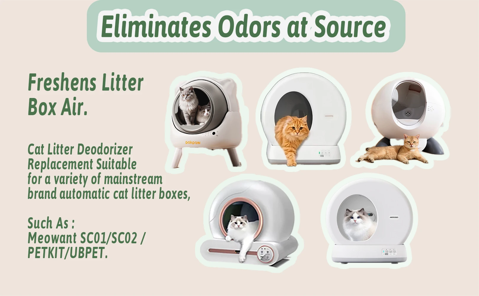 Cat Litter Deodorizer Replacement for PETKIT/Meowant/UBPET Self-Cleaning Cat Litter Box SC01/SC02 - Eliminates Odors at Source